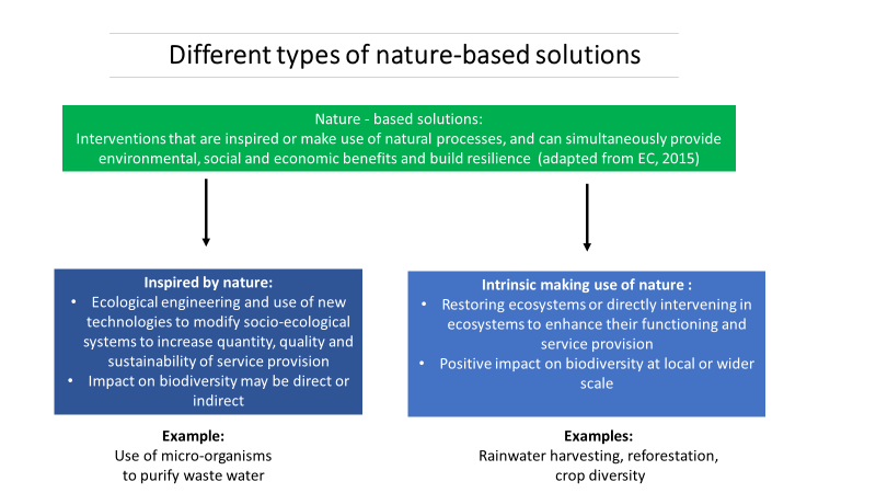 The project team distinguished two types of nature-based solutions i.e. those 1) inspired by nature and 2) intrinsic making use of or based on natural processes. Both types are relevant for this project because they are assumed to 1) contribute to food security in the context of climate change, 2) address climate related risks affecting food systems, 3) maintain and/or increase biodiversity and 4) support circularity in food systems. In 2020, this project will build upon the results of 2019, by creating a knowledge base for inspired and intrinsic NBS in the context of food systems in different socio-ecological and climatic conditions. The transdisciplinary research includes literature research and case study research and facilitates a dialogue within Wageningen University & Research.