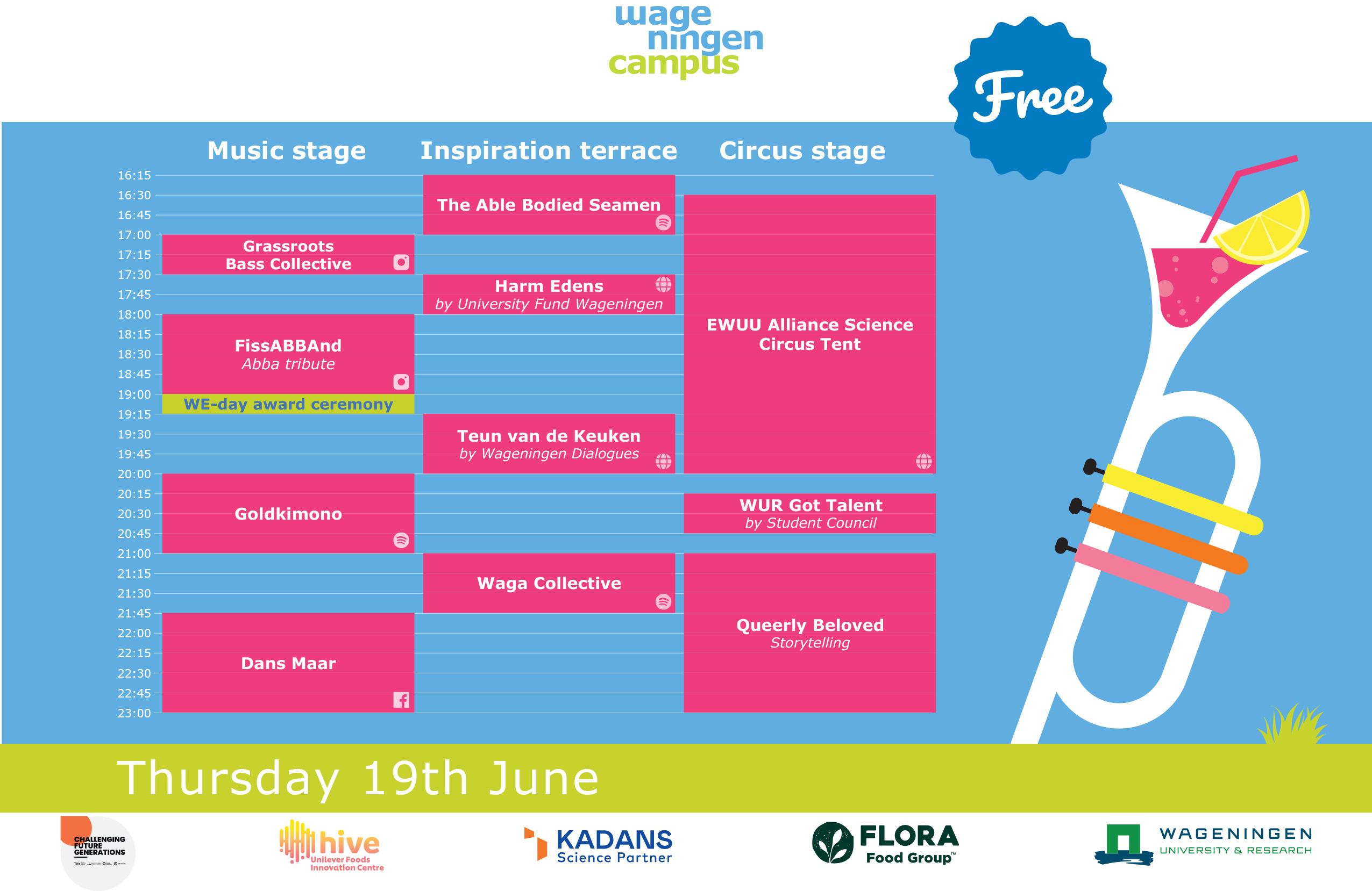Wageningen Campus Summervibes is THE festival for everyone who studies, has studied or works on campus. Students, alumni, PhD's and employees of WUR and companies on campus. Trust us— it will be even better than last year. Three podia, a science circus - OH - and we’ve put in a special request for perfect festival weather.