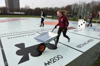 Wageningen students have set a new record for the board game Monopoly on 1st of December 2015. The well-known family game was played on a life-sized board for over half an hour. The dimensions of the gameboard were sufficient to break the previous record.