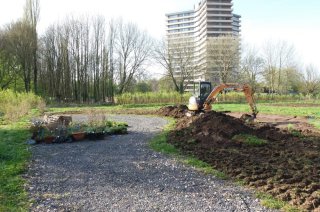 Alexandra van Zijl and Maria-Franca Dekkers redesigned the first planting of 2016 and created a wadi at a very wet spot. Now the plants are thriving and people and insects are enjoying the flowers. Read more at WUR.nl (only in Dutch) or at the site of Wageningen Student Farm