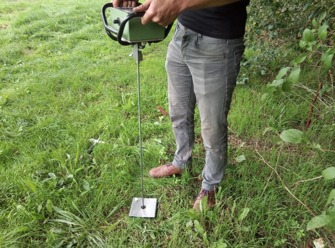 Al tientallen jaren is de standaardmethode om de dichtheid van de bodem te meten het graven van een kuil en daar ringen met een bekend volume in de bodem te duwen, die uit te graven, netjes af te snijden en in het lab te wegen, drogen en weer wegen. Dan weet je zowel de veldvochtige bulkdichtheid, het vochtgehalte van de bodem op dat moment en de droge bulkdichtheid (massa per volume: g/cm3, wordt beïnvloed door de textuur en structuur/porositeit). Dat is een nogal bewerkelijke methode die veel tijd kost, de bodem verstoort en inzet van het lab vraagt.