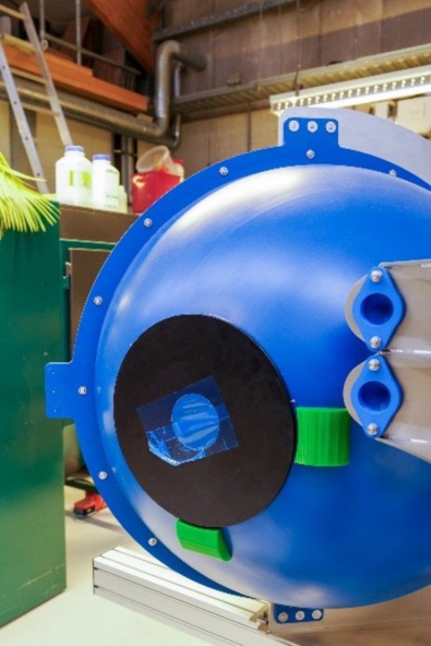 Via de koffieruimte lopen we door de werkplaats richting het kantoor. In die paar stappen zie je al werkbanken vol gereedschap, buizen in alle denkbare maten en een menshoog bouwwerk met een grote, blauw bol eraan. We zitten nog maar net in het kantoor met groepshoofd Erwin Beckers en teamleider Eric Karruppannan of er klopt een onderzoeker aan: “Heb je een momentje?”. Het gaat om een nieuwe opdracht. Toeval? Zeker niet, volgens Beckers. “Tijdens ons wekelijks overleg klopt er steevast minstens één onderzoeker aan voor hulp.” En helpen doen ze bij de Wageningen Technical Solutions maar al te graag.