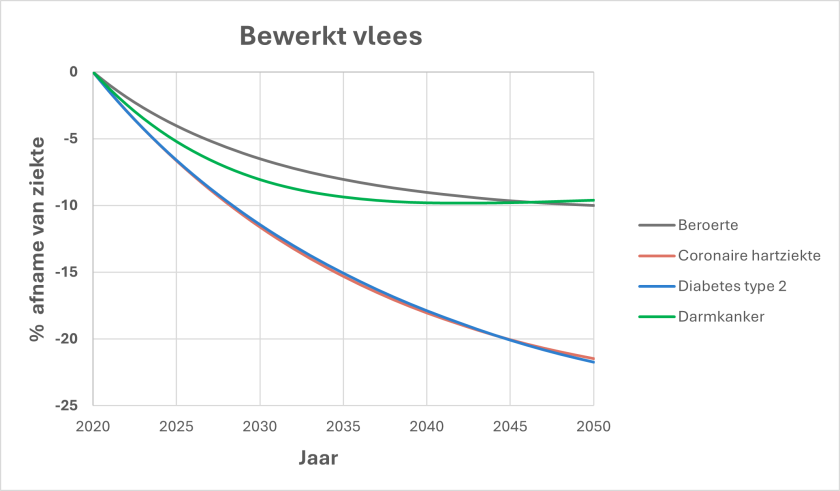 Nederland kan in 2050 ongeveer twintig procent minder nieuwe gevallen van zowel diabetes, coronaire hartziekten als beroertes tellen, als alle Nederlanders vanaf nu dagelijks twee stuks fruit eten en bewerkt vlees zoals worst en hamburgers laten staan. Dat blijkt uit onderzoek van Wageningen University & Research (WUR). De onderzoekers publiceerden hun bevindingen in het wetenschappelijke tijdschrift eClinicalMedicine.