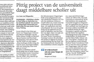 Project Junior Consultancy Training in De Gelderlander - onder katern Food Valley - als één van de educatie-projecten van het Food Valley Scholennetwerk.