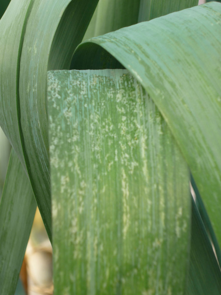 Trips is een jaarlijks terugkerend probleem in de biologische en gangbare teelt van prei. De schade is zichtbaar in de vorm van zilvergrijze vlekjes op de bladeren.