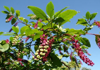 Oosterse karmozijnbes is een vaste plant uit Oost-Azië die rond 1850 in Europa is geïntroduceerd als sierplant. Minder vaak zie je de Westerse Karmozijnbes, die uit uit Noord-Amerika komt. Beide soorten hebben donkerpaarse tot zwarte bessen. De zaden, onrijpe bessen en wortels zijn giftig. Karmozijnbes vormt een risico voor natuur en milieu doordat de plant zich snel verspreidt en andere planten verdringt.