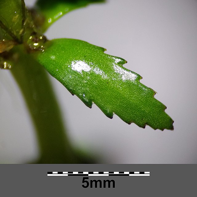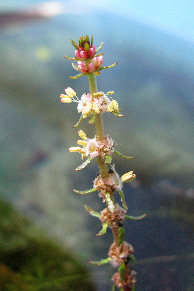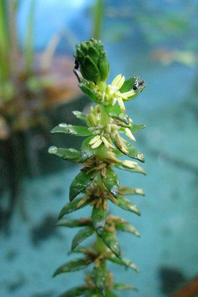 De plant heeft twee typen bladeren die groeien in bladkransen. Ondergedoken bladeren zijn veervormig, 2-5 cm lang en 2-4 cm breed. De bladeren boven water hebben een stijve textuur, zijn 0,4-3 cm lang, 1,5-3 mm breed en variëren sterk in zowel bladvorm als structuur.